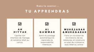 L’amour, ça ne commence pas avec l’autre. Ça commence avec toi. Avec ton cœur, ton intention, et la façon dont tu places Allah au centre de ta vie. Beaucoup pensent que le mariage démarre à la rencontre. Mais un couple solide ne se bâtit pas sur un coup de cœur ou sur des illusions : il se bâtit sur des fondations intérieures.